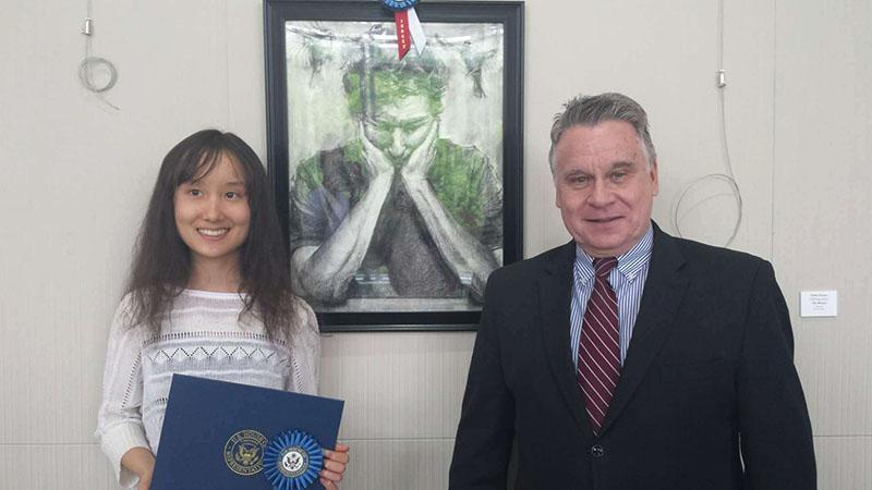 Zhou Zhang's State Gold Key Award-winning Artwork "Wall Street" was on Display at the U.S. Department of Education Headquarters in Washington, D.C.